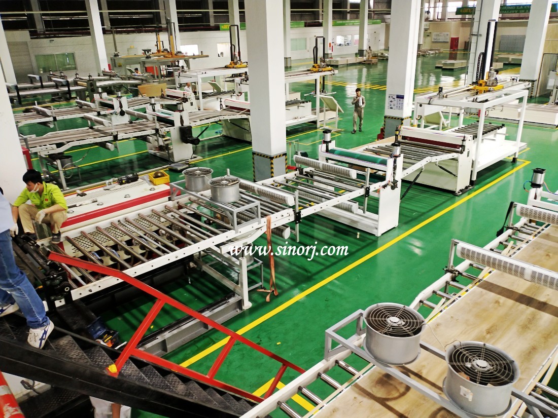 以上四層均可同時在一條生產線上完成多層結合為一體??蓽p少表層處理花紋、耐磨層的設備,減少人工及設備的投資,大大降低PVC地板生產成本。
